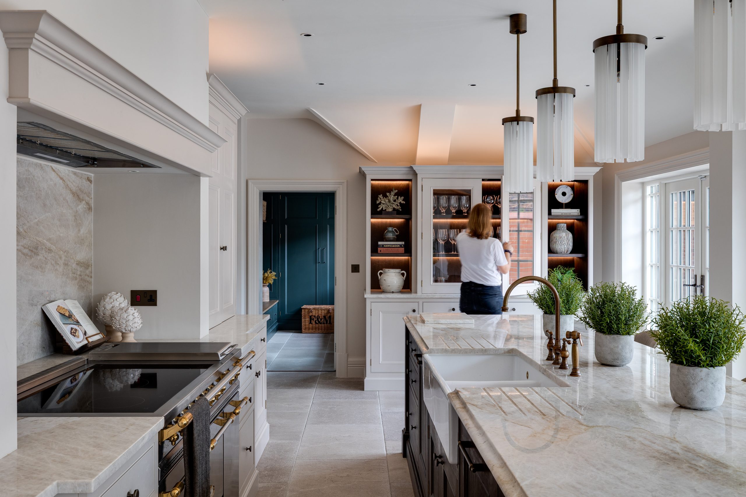 Adaptable homes need to serve both stillness and sociability. To balance the private, quieter spaces elsewhere in the house, the heart of this home was designed to bring people together. A generous kitchen flows directly into a tailored bar and games room, forming a central hub where the family can gather and entertain. Moody tones in the games room add depth and atmosphere, while the bar provides a purposeful focal point for shared moments.